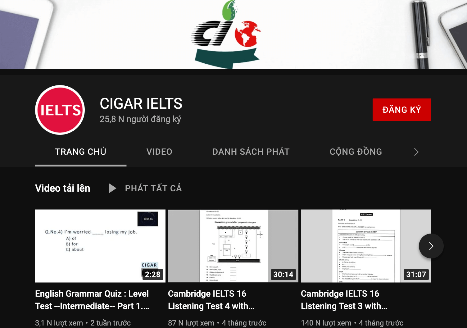 Kênh này cung cấp hàng trăm Video luyện nghe IELTS có đáp án theo ngày tháng, theo band để bạn có thể dễ dàng luyện tập. Bên cạnh luyện nghe IELTS có transcript, các bạn có thể luyện đọc hay làm bài thi Reading với một số bài đơn giản để tăng thêm các kỹ năng này.