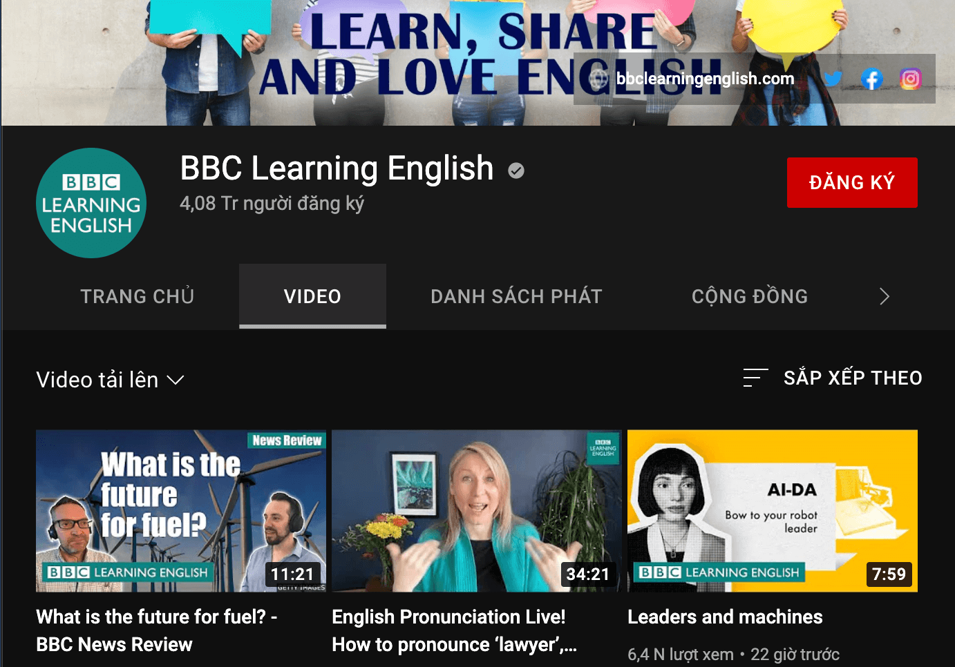 Kênh BBC Learning English cung cấp nhiều video với các chủ điểm như Grammar, Vocabulary, prouncition,… giúp bạn cải thiện trình độ Tiếng Anh của mình hiệu quả. Điểm nổi bật của kênh đó là giúp bạn luyện nghe và phát âm rất tốt dành cho bạn nào muốn nói chuẩn theo giọng UK.