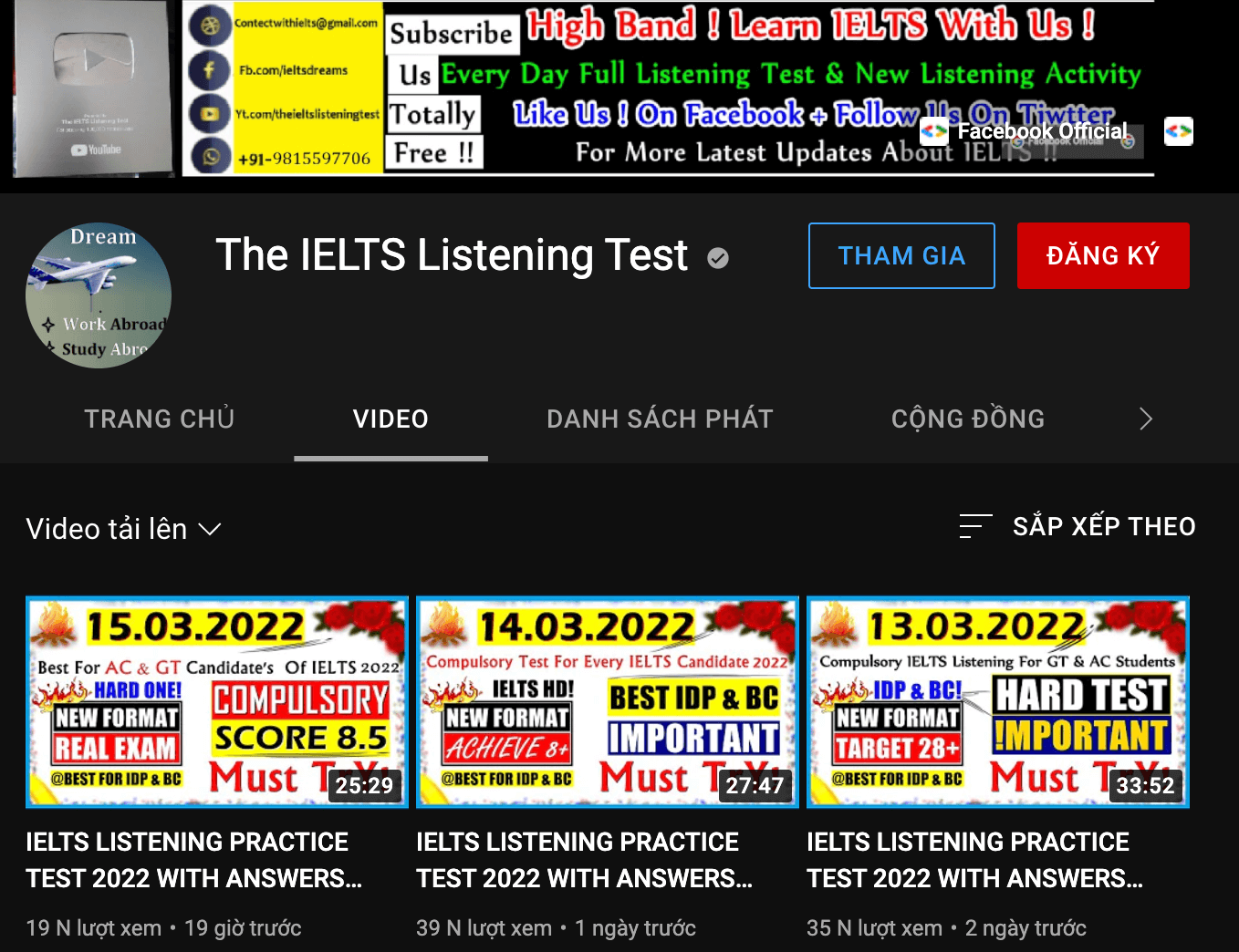 Kênh này tổng hợp hàng trăm bài nghe có đáp án từ part 1 đến part 4, có phân loại theo ngày tháng và theo band. Bạn có thể lựa chọn bài nghe theo từng năm để luyện tập và tăng phản xạ của mình.